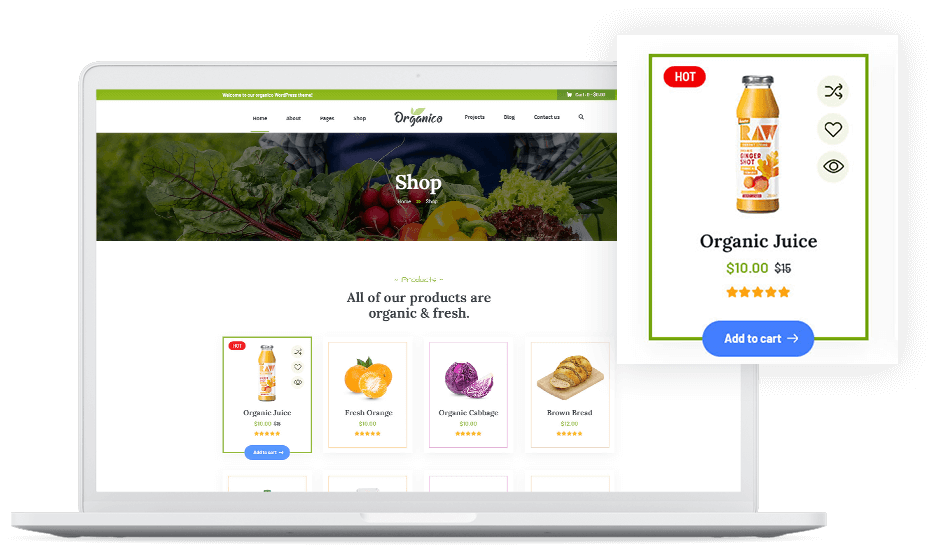 Build your organic store with Organio Purchase now. $59!